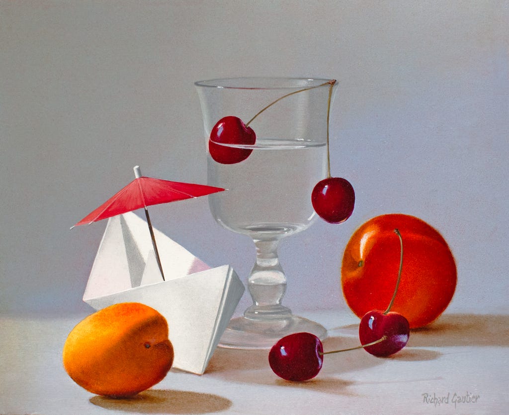 Verre d’eau aux cerises