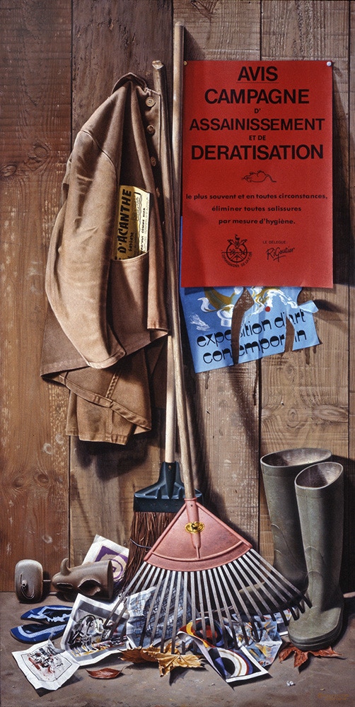 Tableau-fétiche de Richard GAUTIER. Dans le bas du trompe-l’œil, on peut voir des reproductions de MIRO, PICASSO, MATHIEU, PICASSO (bis), MONDRIAN, DELAUNAY, KANDINSKI et le logo du CENTRE NATIONAL DES ARTS PLASTIQUES.