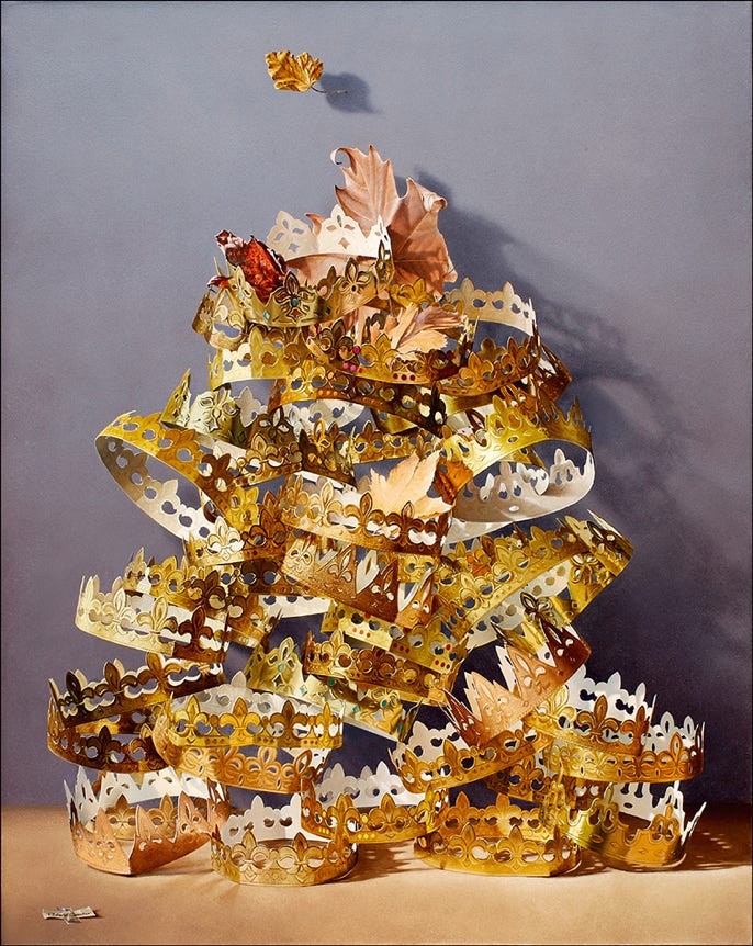 Évoque la lutte et la pyramide du pouvoir qui se termine dans la solitude de la mort. Ce trompe-l'œil a valu une médaille d'argent à Richard GAUTIER pour son entrée en 2009 au Salon des Artistes français au Grand Palais, à Paris.